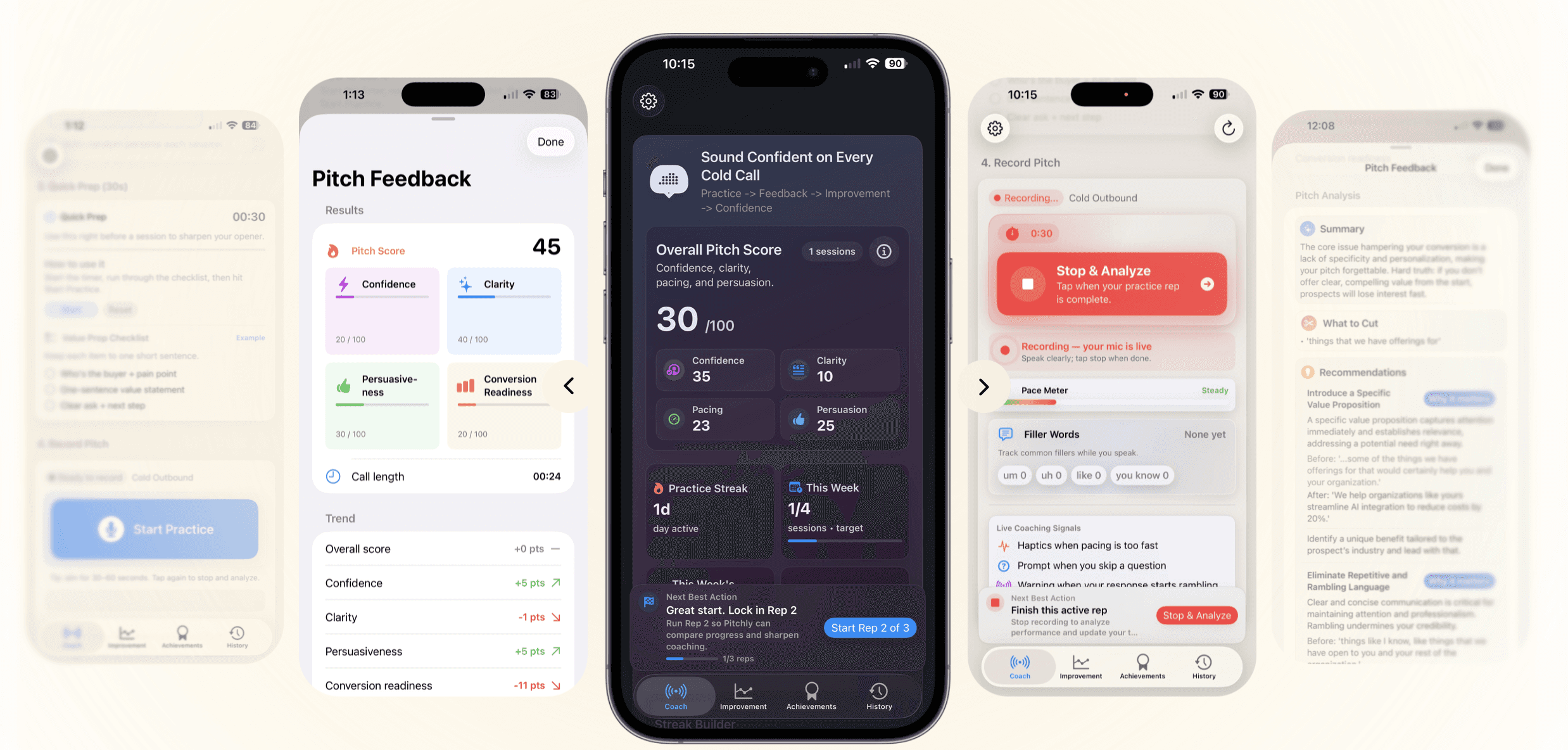 Pitchly AI helps users rehearse sales conversations before they ever speak to a real prospect. By recording practice pitches, users receive feedback on clarity, confidence, pacing, tone, and structure, helping them refine communication and improve performance over time.